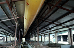 豚は暑いのがとても苦手なので、夏には防暑対策をしてあげます。熱射病にもかかりやすいので、豚舎の周囲に落葉樹を植えたり、よしずを張ったりして木陰をつくってあげることが大切です。また屋根の上にスプリンクラー、舎内に扇風機や換気扇を設置し、空気を対流させて、換気をよくします。