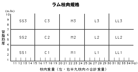資料:ラム枝肉規格 枝肉規格基準、(社)畜産技術協会