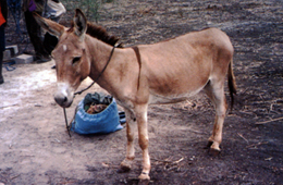 地域によって大小さまざまですが、馬に比べて身体は小柄で耳が長くて大きく、尾毛(びもう)が少ない、蹄が小さくて固い、お尻が尖っている、チョコチョコ歩く、スピードは遅いが持久力があるなど、馬とはまた違った特徴があります。