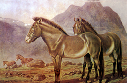 人類が定住生活を送るようになると、家畜(馬)を飼い、人の役に立つように改良を進めました(家畜化)。そして家畜となった馬(家馬)は、身の危険を感じなくなり、エサを探して広い草原をさまよい歩く必要もなくなりました。その一方、厳しい自然の摂理にさらされてしだいに追い詰められていった野生馬は、20世紀初め、ついに発祥の地ユーラシア大陸の草原からも姿を消しました。