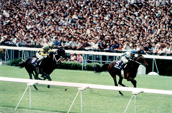 ギリシャ・ローマ時代(紀元前600年ごろ)にはすでに、4頭立ての戦車レースや乗馬レースが行われていたという記録があります。そしてレースで優しゅうな成績をあげた馬がもてはやされ、その子どもに期待して血統を大切にするようになりました。競馬は、より優しゅうな馬を選ぶために能力を調べる場となり、改良を進めるうえで、今でも大きな役割を果たしています。