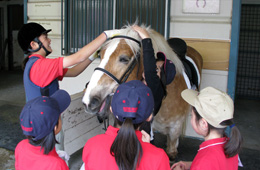 最近、日本の専門教育は技術教育に重点をおいていますが、馬とのふれあいを大切にする乗馬に関わる人材の養成が不足しています。その不足分は、馬に対してやさしく思いやる心(愛馬心)でしか補うことができません。今、日本で大切なのはゆとりを持って愛馬心をつちかう馬事思想の普及です。